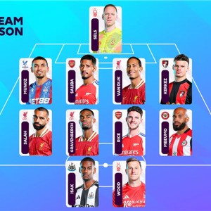 5月30日讯 英超官方公布了2024-25赛季球迷评选的最佳阵容,其中联赛冠军利物浦三人入选,阿森纳两人。球迷评选赛季最...